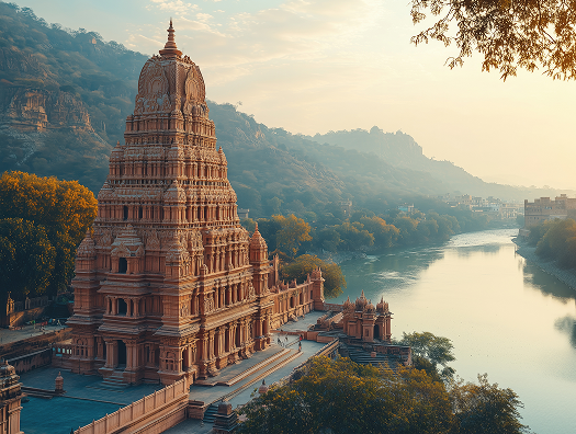 Sacred Jyotirlinga shrine on the Narmada River, revered for divine blessings.